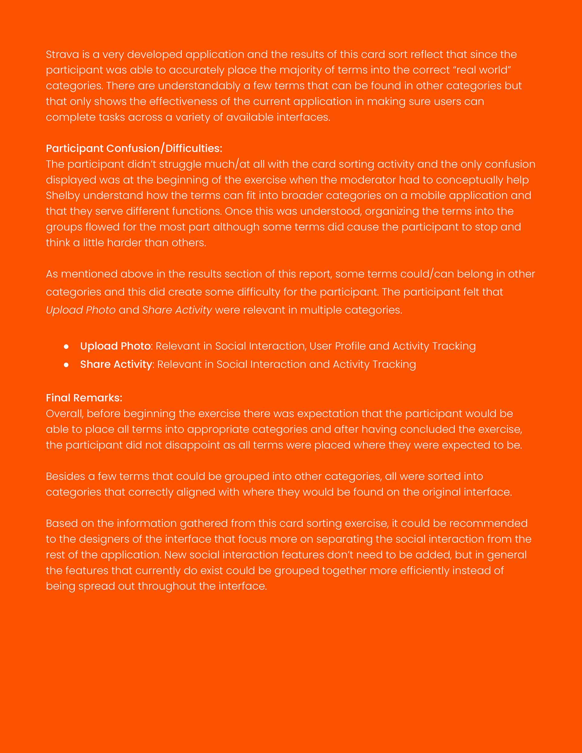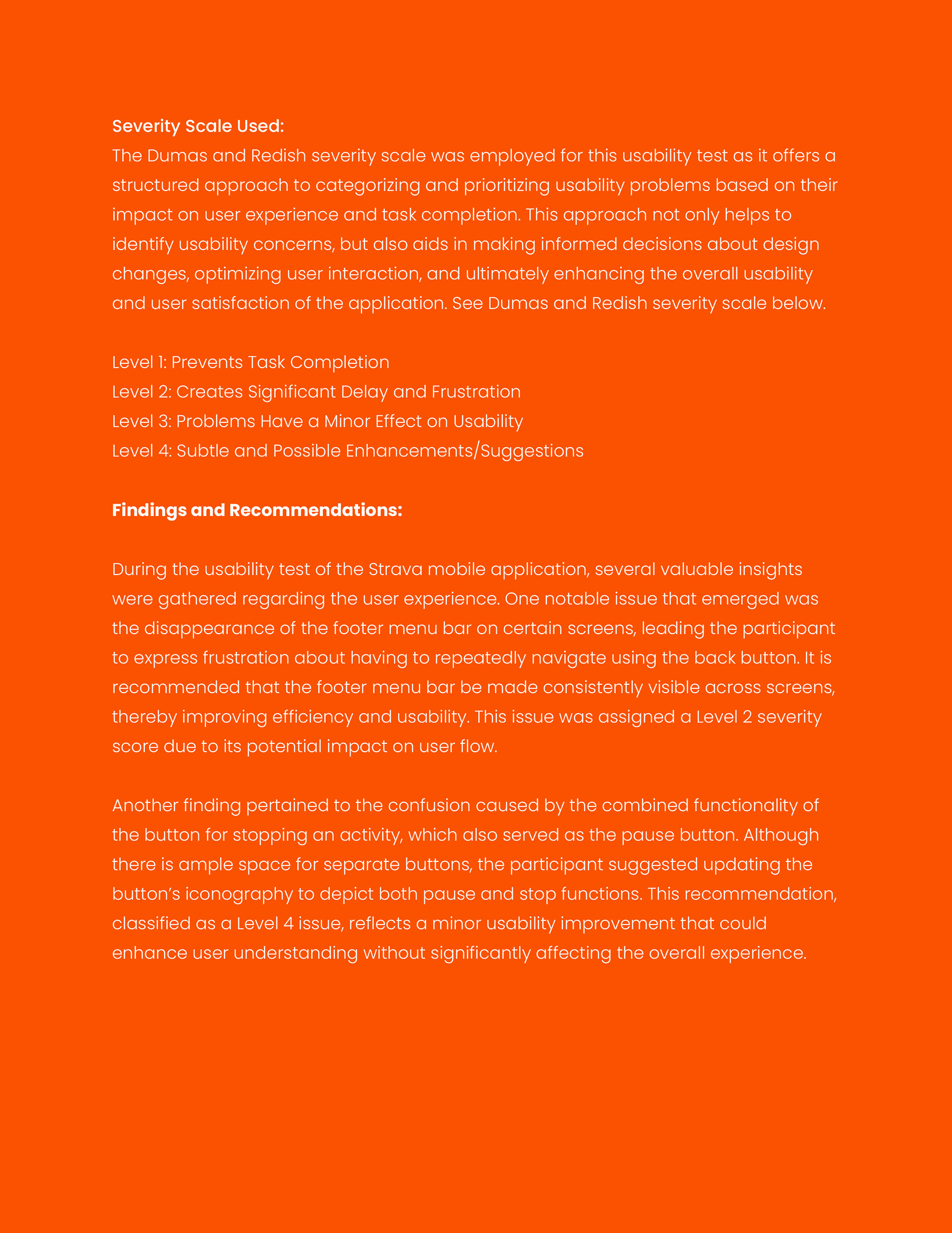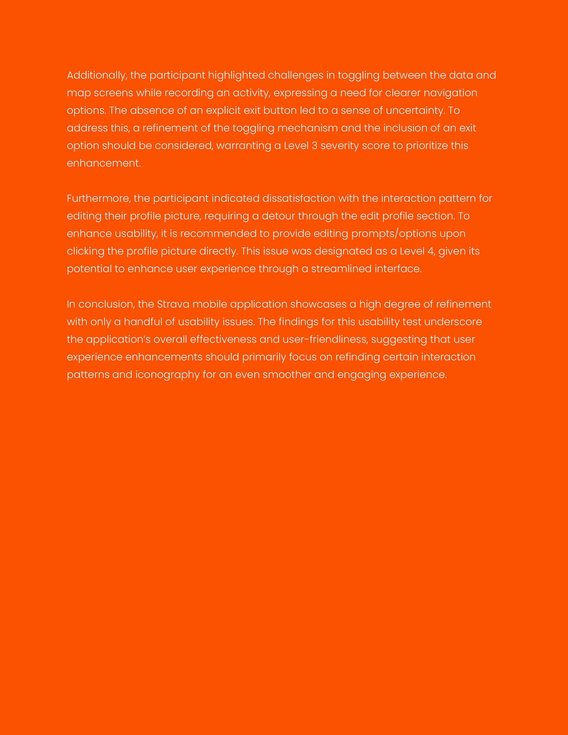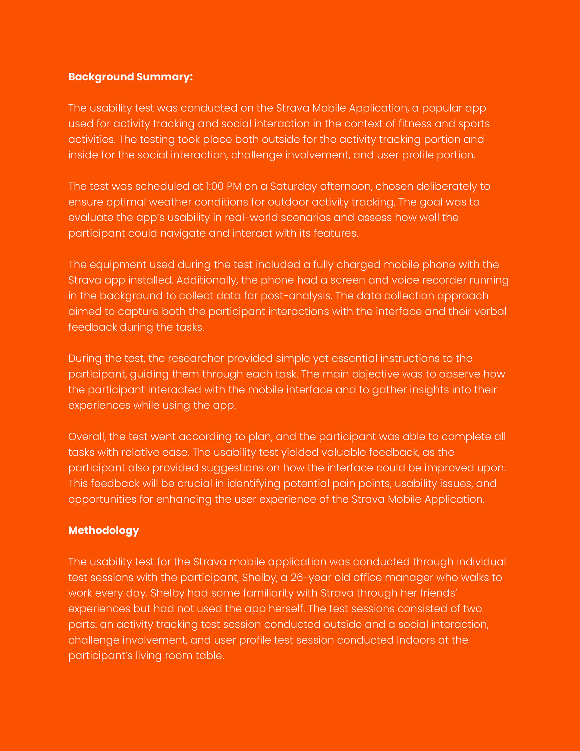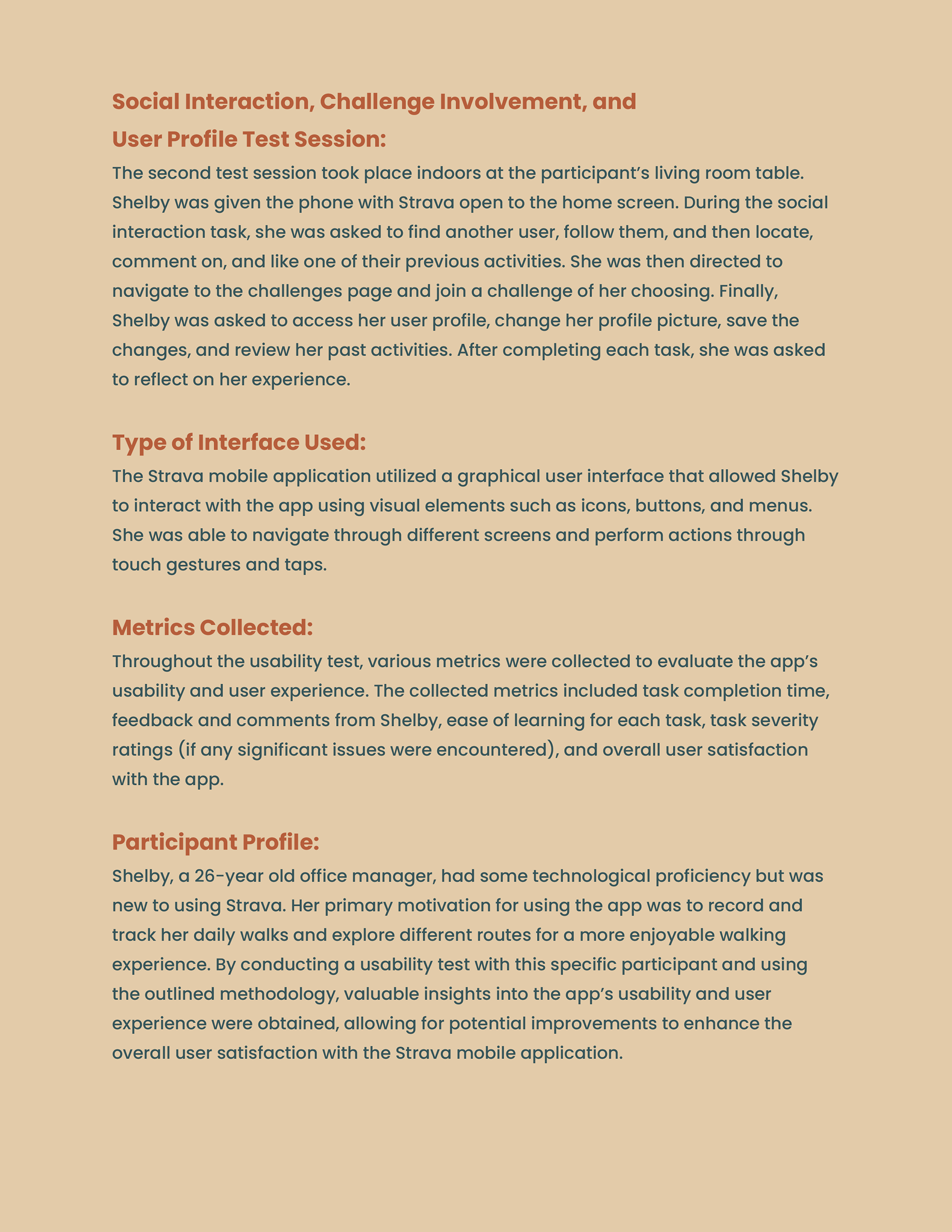 This usability test report documents the evaluation of the Strava mobile application through moderated, task-based testing in real-world and indoor environments. The study assessed core user flows—including activity tracking, social interaction, challenges, and profile management—using qualitative feedback, performance metrics, and severity ratings to identify usability issues and provide evidence-based recommendations for improving overall user experience.