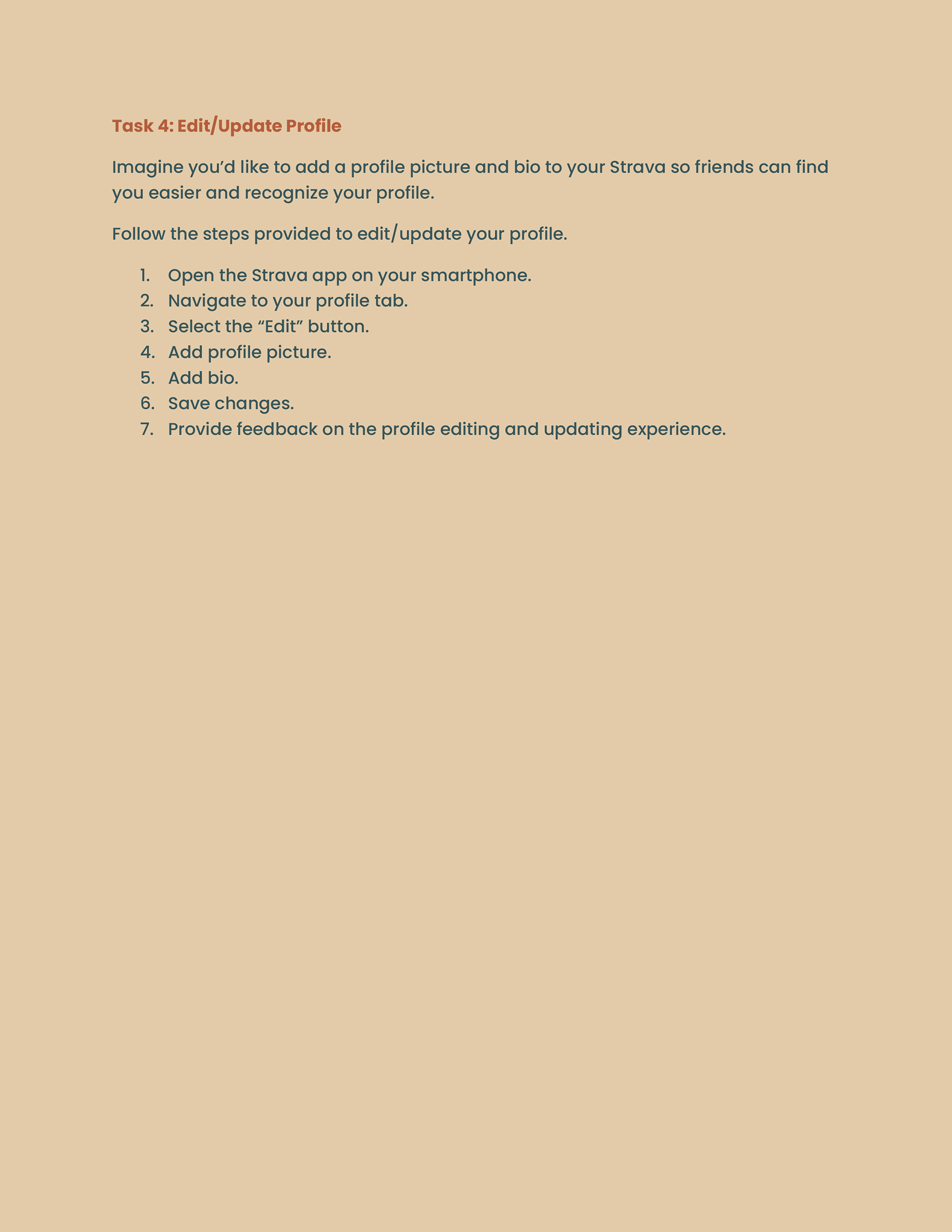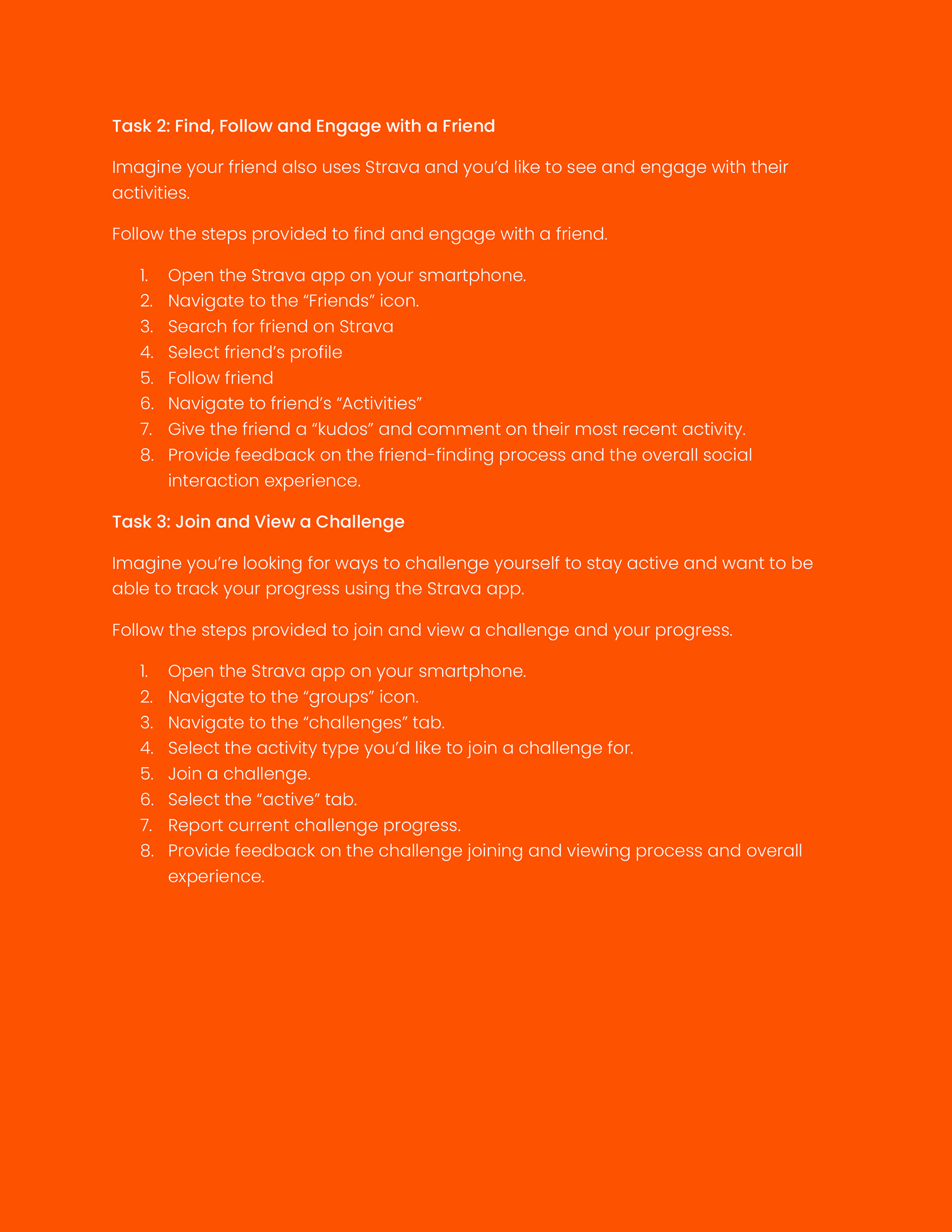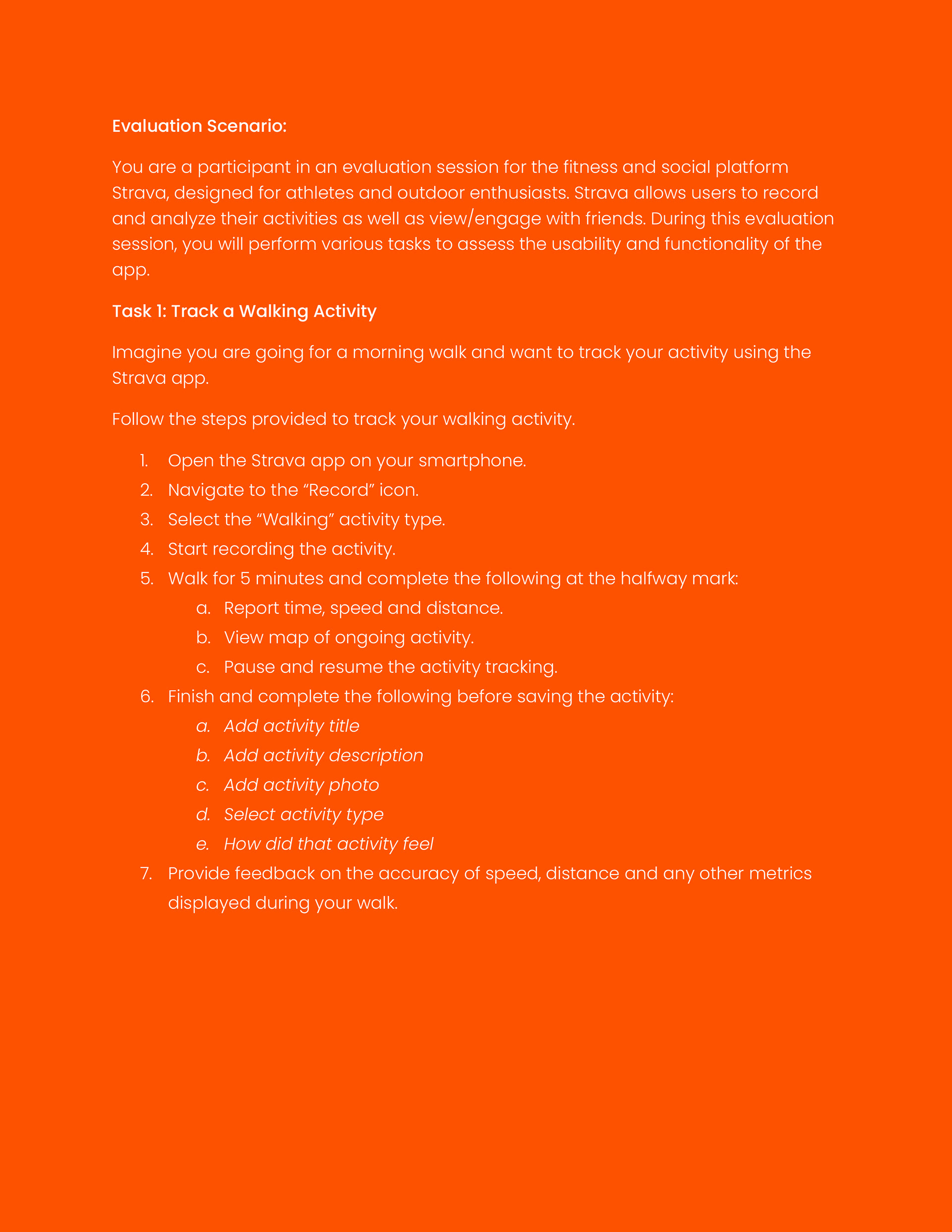 Usability Evaluation Tasks & Scenarios: Strava Mobile App